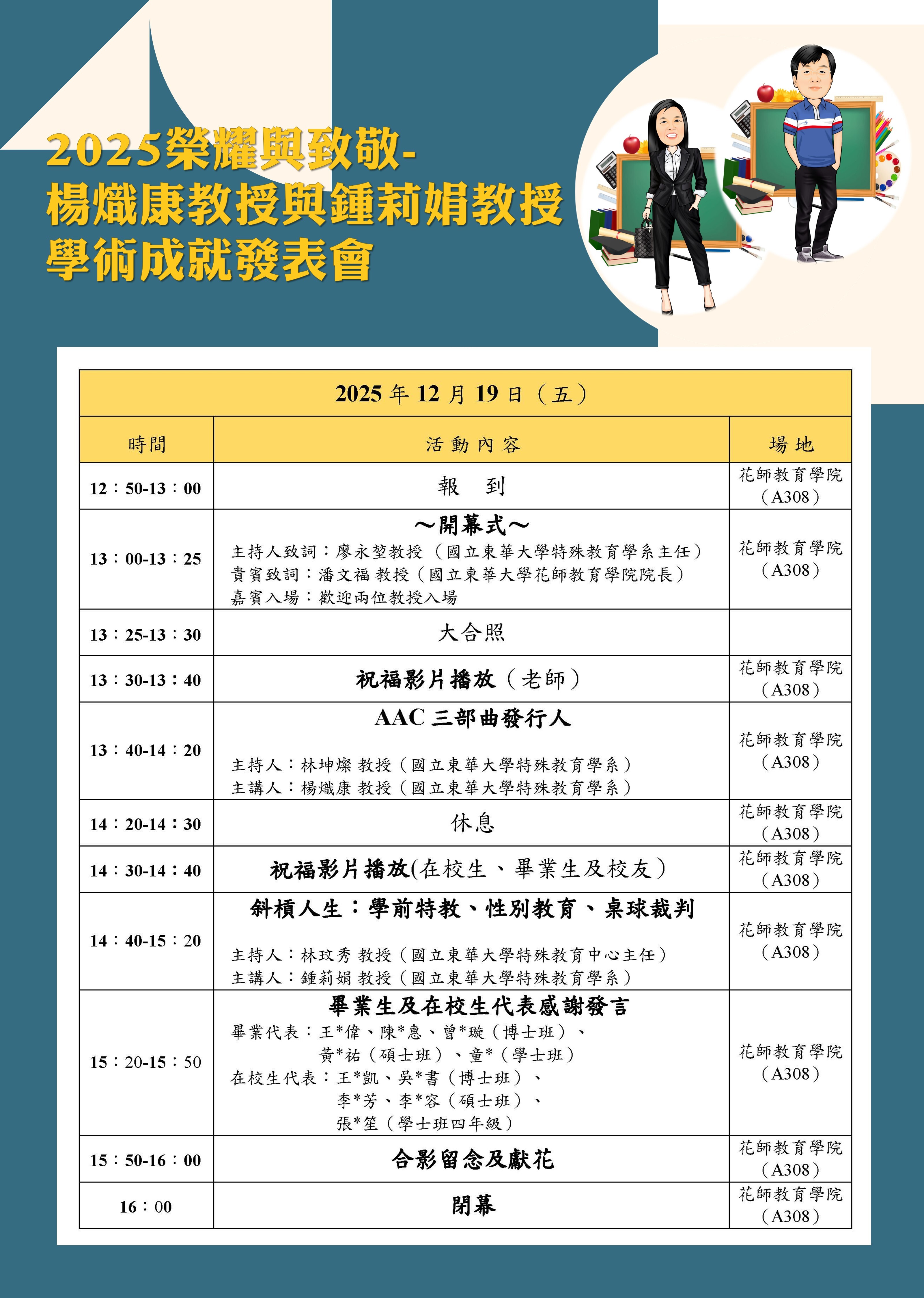 【活動公告】2025榮耀與致敬-楊熾康教授與鍾莉娟教授學術成就發表會